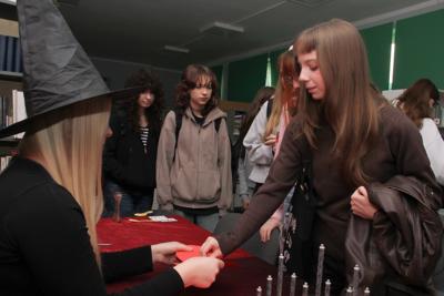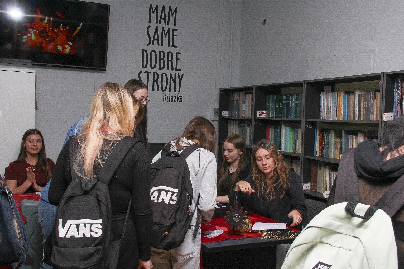Andrzejki to czas wróżb i wspólnej zabawy.☺️ Dziś nasza szkolna biblioteka zamieniła się w salę wróżb.😄 Uczniowie ze szkolnego wolontariatu i Samorządu Uczniowskiego przygotowali dla koleżanek i kolegów oraz nauczycieli stanowiska z andrzejkowymi wróżbami.To właśnie dziś można było poznać tajniki swojej przyszłości😊. Szpilka prawdy, wyrocznia Marrakeszu, wróżba Izydy, wróżby z tomików poezji czy wróżenie na życzenie, to tylko niektóre z przygotowanych atrakcji.😊